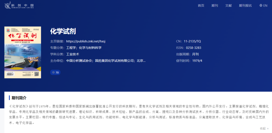 《化学试剂》在“科技期刊双语传播工程”中的宣传页