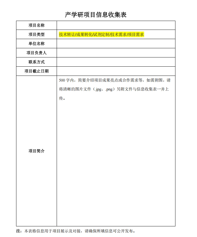 点击此处下载附件:试剂信息网-产学研项目征集信息表.docx
