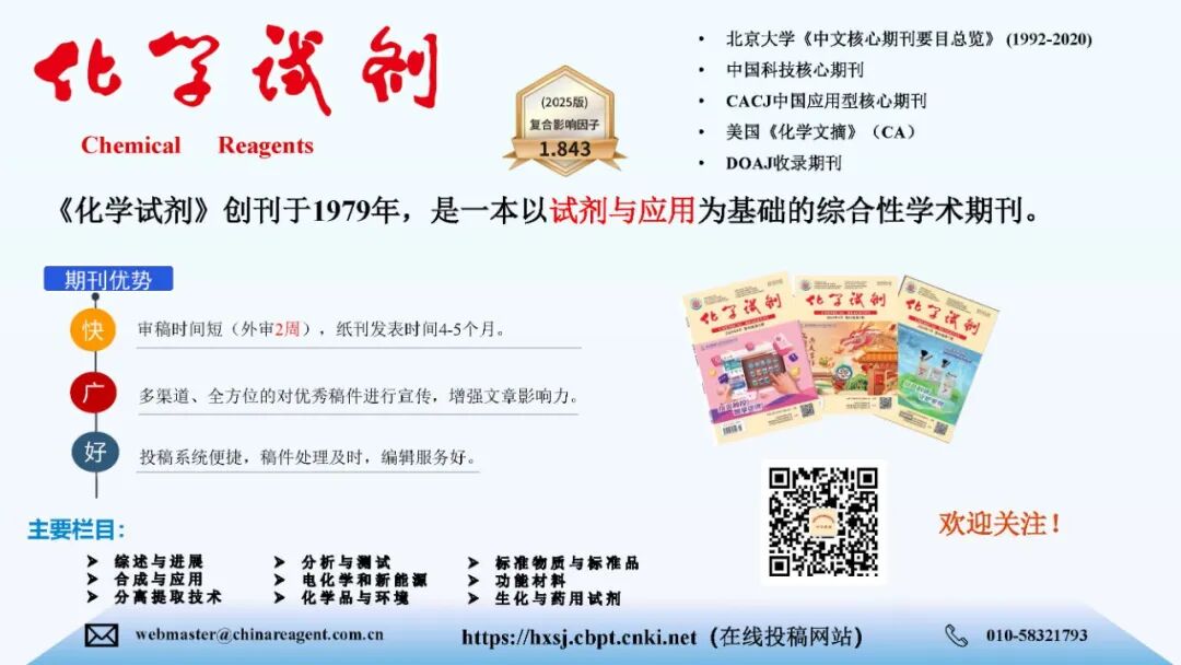 2、本专辑将择优遴选优秀论文,在2026年10月举办的“第20届全国试剂与应用技术交流会上”作主题报告。