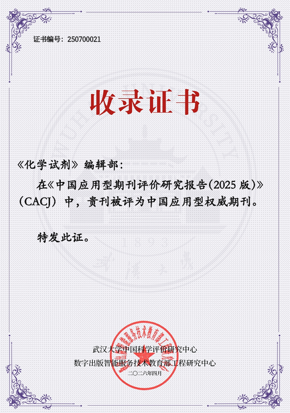 4月10日在第二届中国应用型期刊高质量发展研讨会上,武汉大学中国科学评价研究中心、武汉理工大学数字出版智能服务技术教育部工程研究中心正式发布《中国应用型期刊评价研究报告(2025版)》(CACJ),通过综合评价,《化学试剂》入选生物与化工领域的中国应用型权威期刊。这是继去年入选中国应用型核心期刊后,《化学试剂》再次在产学研用及科技成果转移转化方面获得业界高度认可。