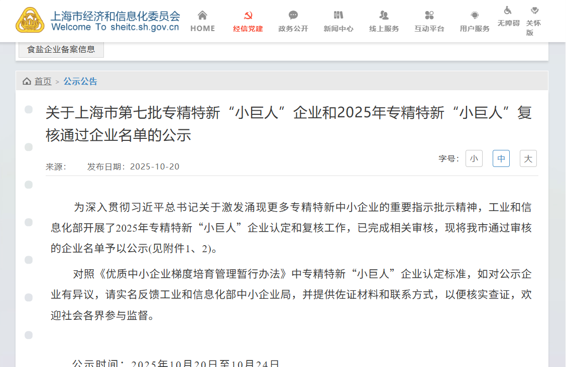 近日,上海市经济和信息化委员会对第七批专精特新“小巨人”企业名单进行公示,上海安谱实验科技股份有限公司(以下简称“安谱实验”)凭借其在专业领域的精深耕耘、强大的技术创新能力与卓越的市场表现,成功入选国家级专精特新“小巨人”企业! 这是一项含金量极高的国家级荣誉,标志着安谱实验的硬核科技实力与“工匠精神”获得了国家层面的权威认可!