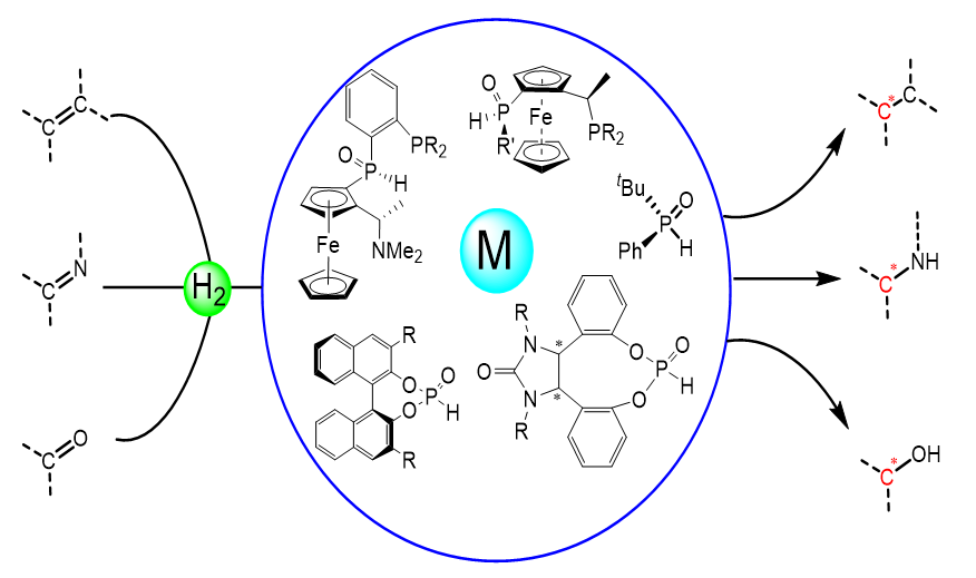 1.系统综述了手性二级膦氧配体在过渡金属催化的多类碳碳双键、碳氧双键和碳氮双键的不对称氢化中的研究进展;